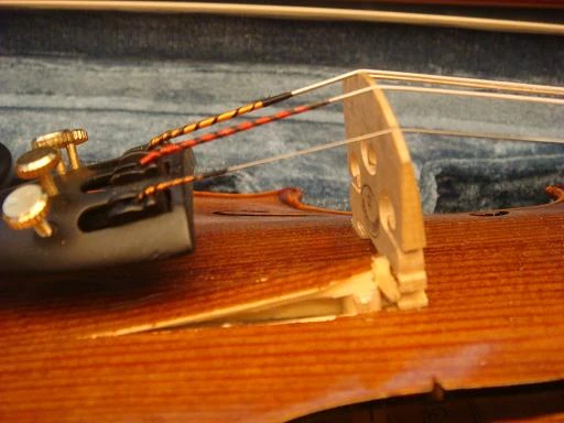 日前接到經銷商的電話,表示一把小提琴面板破裂需要送修,經銷商轉述琴主的說詞:「完全沒有碰撞,琴就變成這樣了!」經銷商正希望幫琴主爭取售後保固的機會。看到琴之後才發現,音柱完全貫穿面板。
